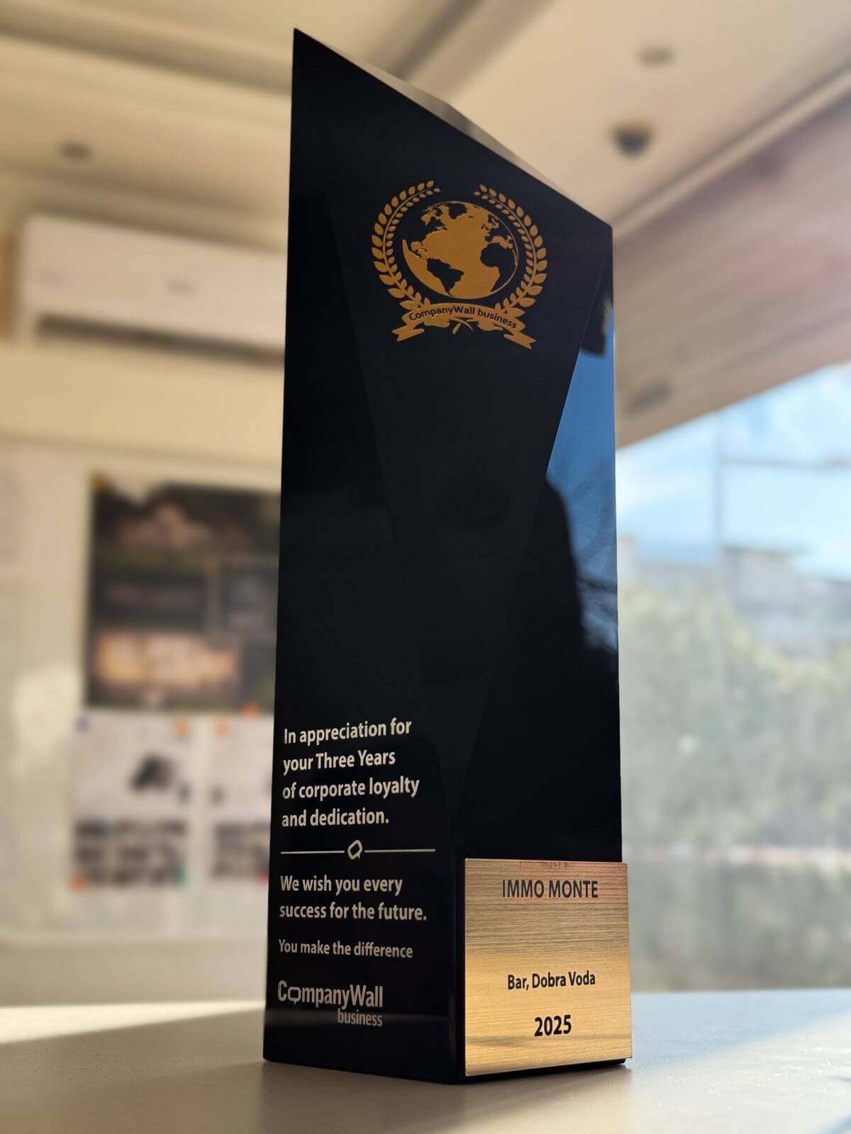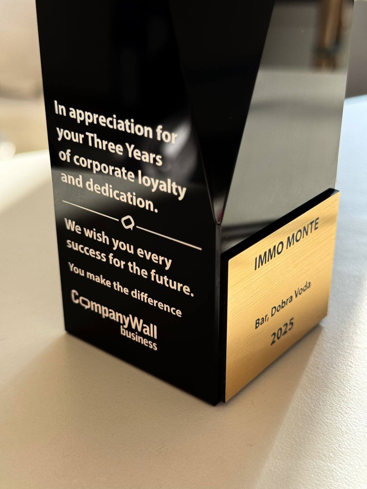 Mit großer Freude teilen wir mit, dass unser Unternehmen IMMO MONTE von Company Wall Montenegro für drei Jahre unternehmerische Loyalität, Engagement und kontinuierliche Qualität ausgezeichnet wurde.