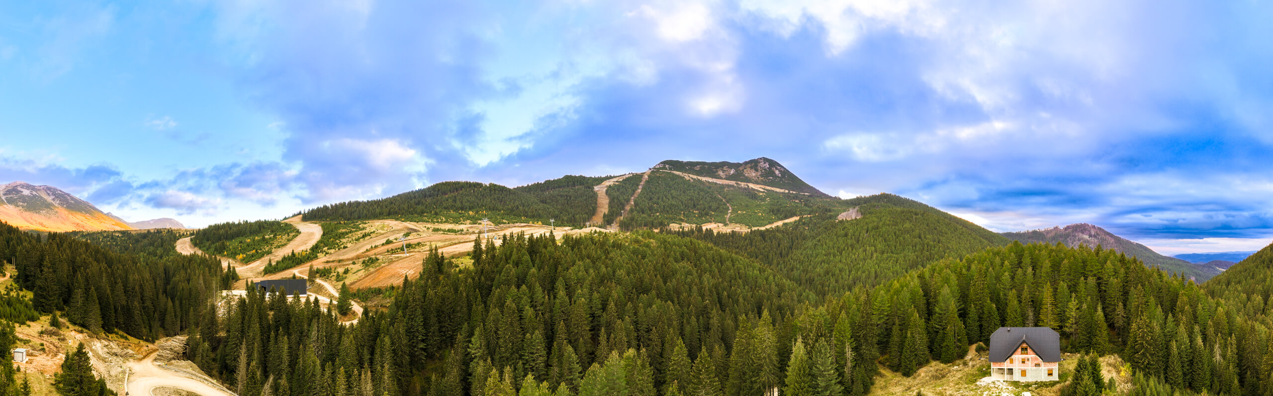 Mali video, panorama iz vazduha od 360 stepeni i snimak iz vazduha od 180 stepeni novonastalog skijališta Štedim-Hajla u Rožajskom regionu na severu Crne Gore.