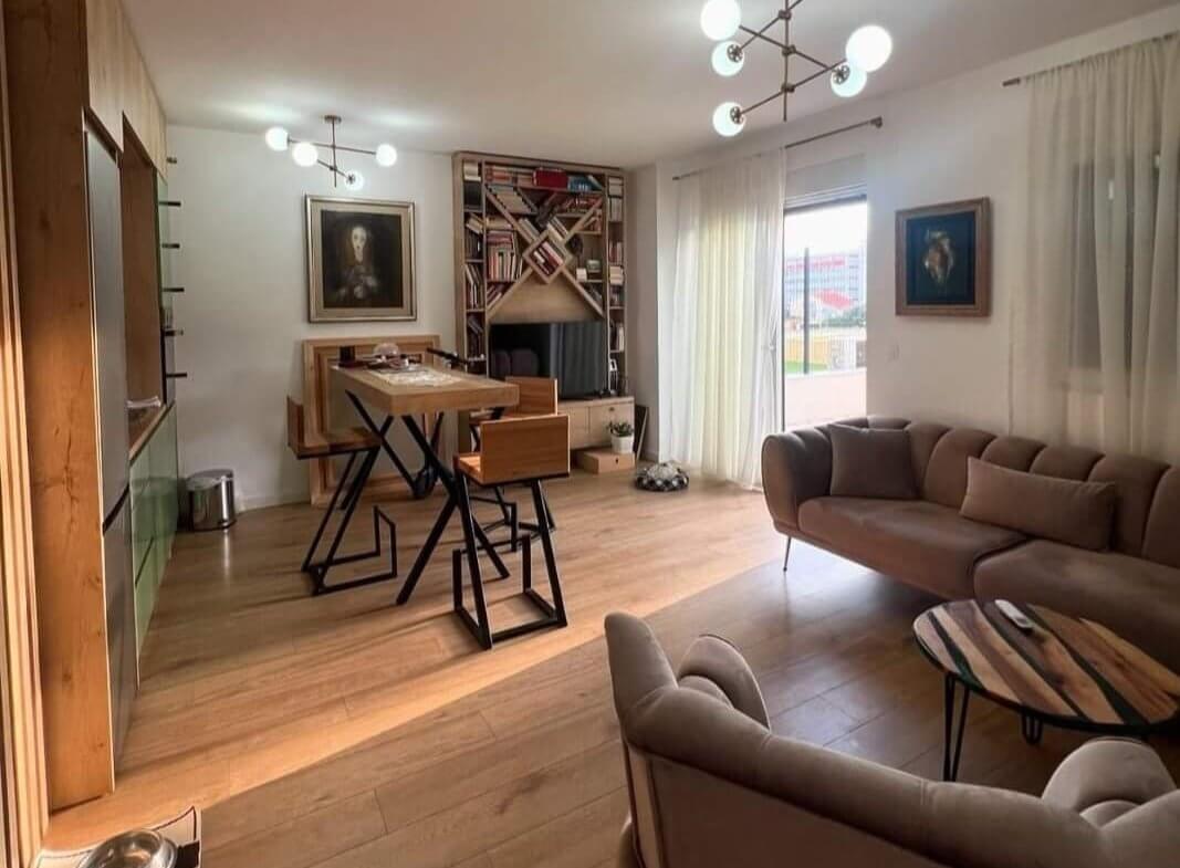For sale this apartment in the center of Bar, 43 m², in a modern building built in 2022. The apartment is located 5 minutes from the sea, on the second floor of a building with 11 floors and consists of a hall, a bathroom, a bedroom with fitted wardrobes, a living room with open kitchen and access to the terrace of 64 m².