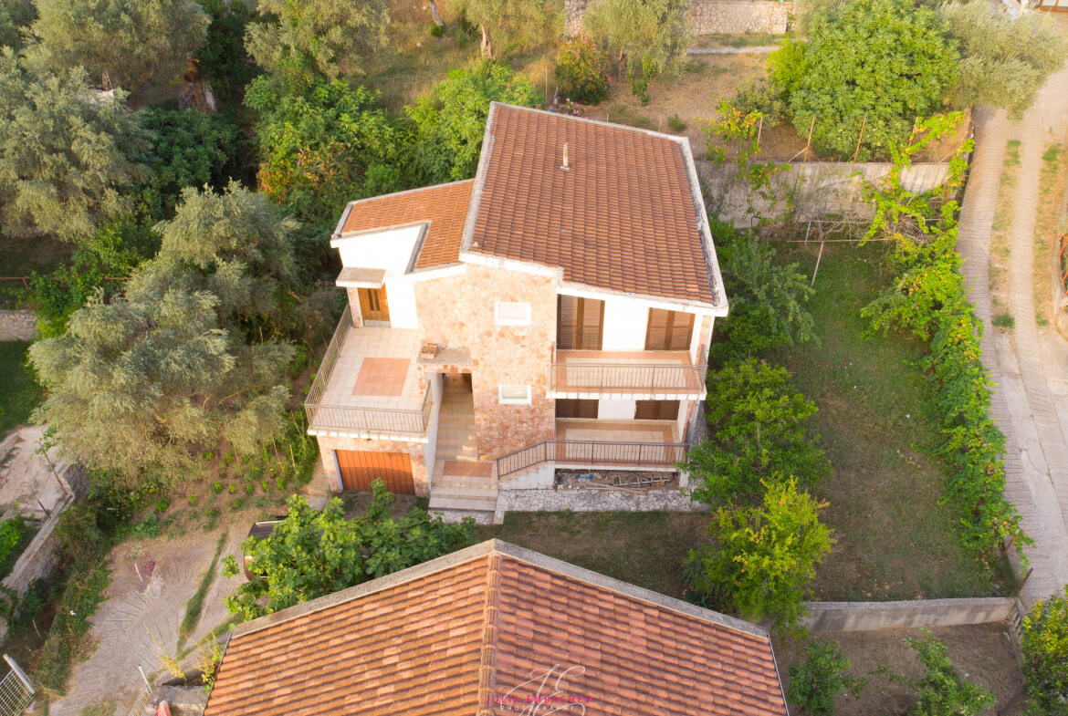 The house is connected to the municipal water and sewage system, and electricity is of course also connected. The plot area is 450 m², the living area of the house is 180 m² and the garage is 20 m². The house has a partial basement, which is a rarity here in Montenegro. The house was built in 1985.