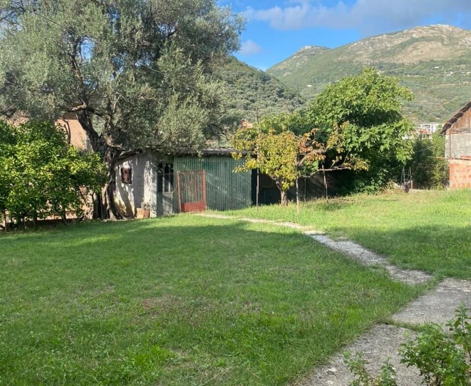 The plot is 1,018 m², it has electricity, road access, water and various fruit trees (dates, plum, tangerine, fig), olive trees, few neighbors. In addition, there is a house (registered) with approx. 82 m² (incl. terrace), a shed with 12 m² and a registered building with approx. 36 m², which can be converted into a garage. There is a building permit, but without detailed specifications. Sea view, mountain view, town view.