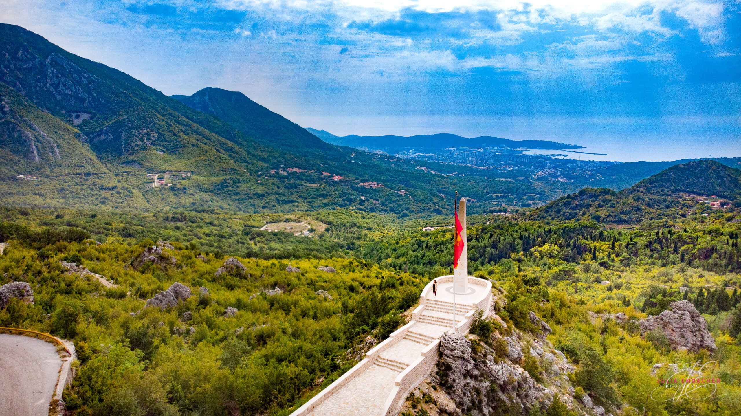 Here is a nice 360 degree panoramic view from the air above the monument in Tudemili. So with a view of the city of Bar on the coast of Montenegro.