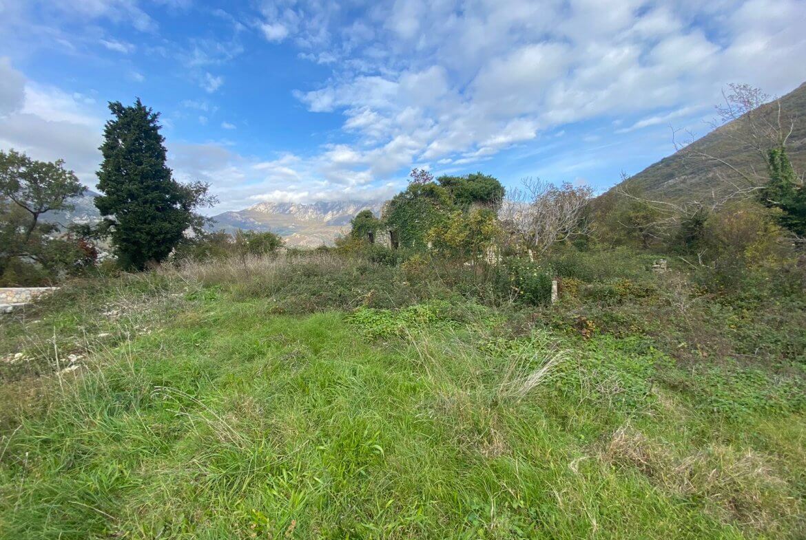 Das Grundstück hat eine Fläche von 3.497 m², zusammen mit einer alten Naturstein-Ruine. Das Grundstück befindet sich in attraktiver Lage, mit Blick auf das Meer, die Berge und die Stadt, nur 3,5 km vom Meer und 2,5 km vom nächsten Supermarkt entfernt. Dies ist ein äußerst friedlicher Ort, der als Luftkurort bekannt ist und sich ideal zum Ausruhen und Entspannen eignet.